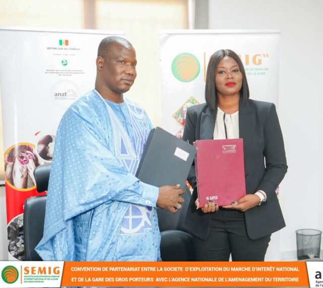 Ce lundi 19 février 2024, une convention de partenariat a été signée entre l’Agence Nationale de l’Aménagement du Territoire (ANAT) et la SEMIG SA, en présence de Madame Fatoumata Niang Ba, DG de la SEMIG SA et de Monsieur Mamadou Djigo, directeur général de l’ANAT.
